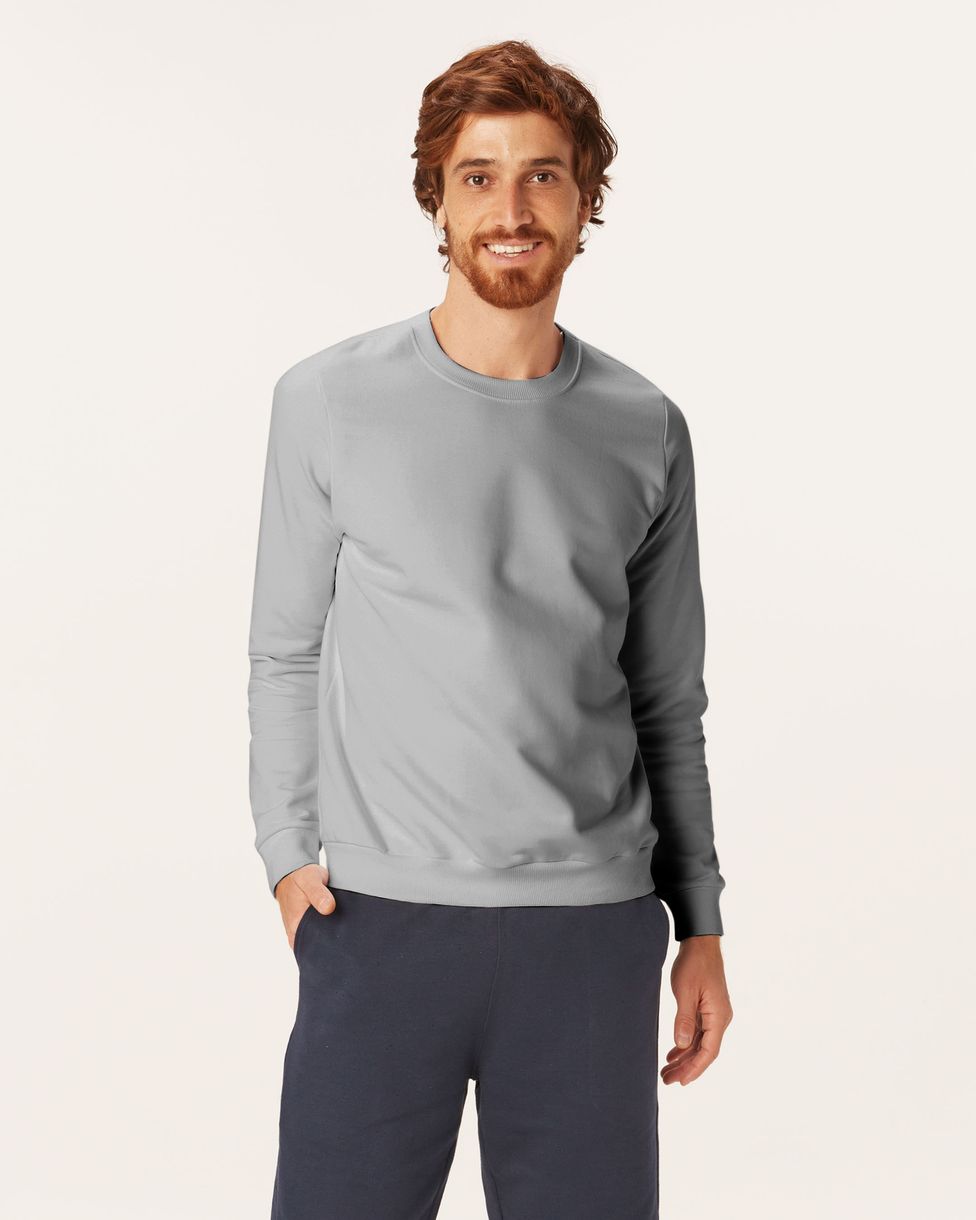Blusão Básico Masculino Decote Redondo Em Moletom Flanelado