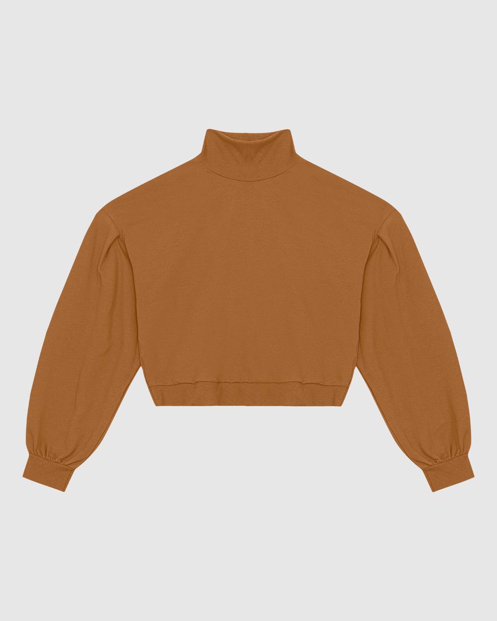 Blusão Cropped Feminino Gola Alta Em Moletom Stretch Flanelado - ENFIM