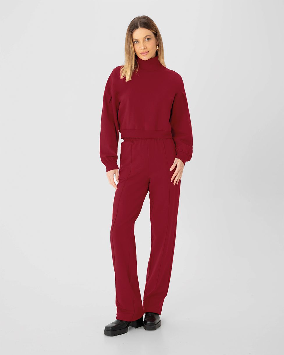 Blusão Cropped Feminino Gola Alta Em Moletom Stretch Flanelado - ENFIM
