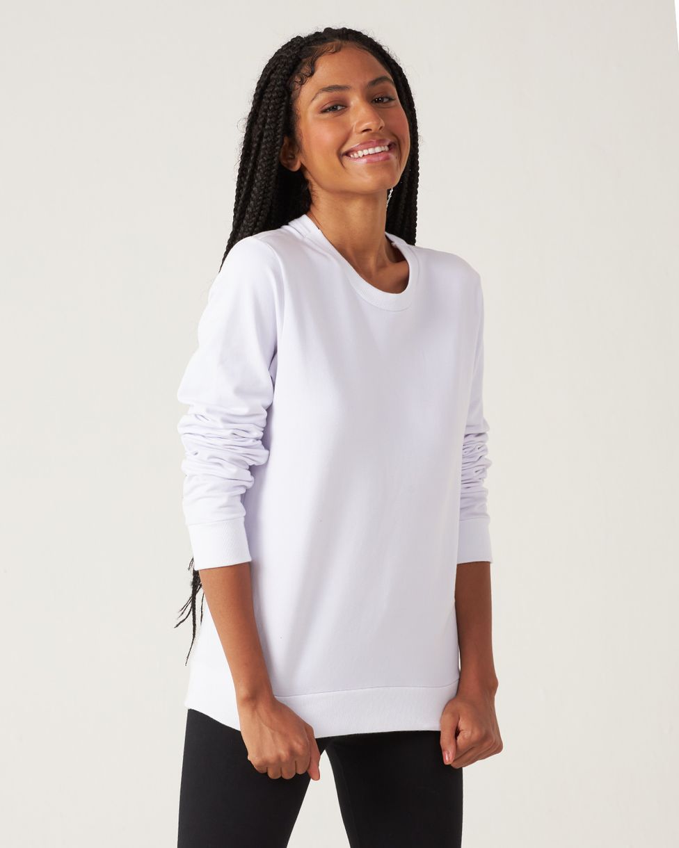Blusão Básico Feminino Decote Redondo Em Moletom Stretch Flanelado