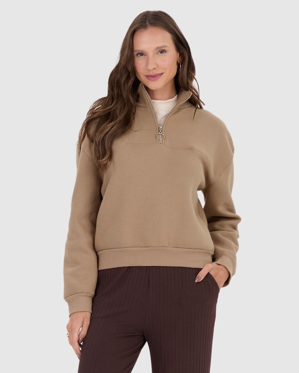 Blusão Feminino Abertura Decote Com Zíper Em Moletom Premium