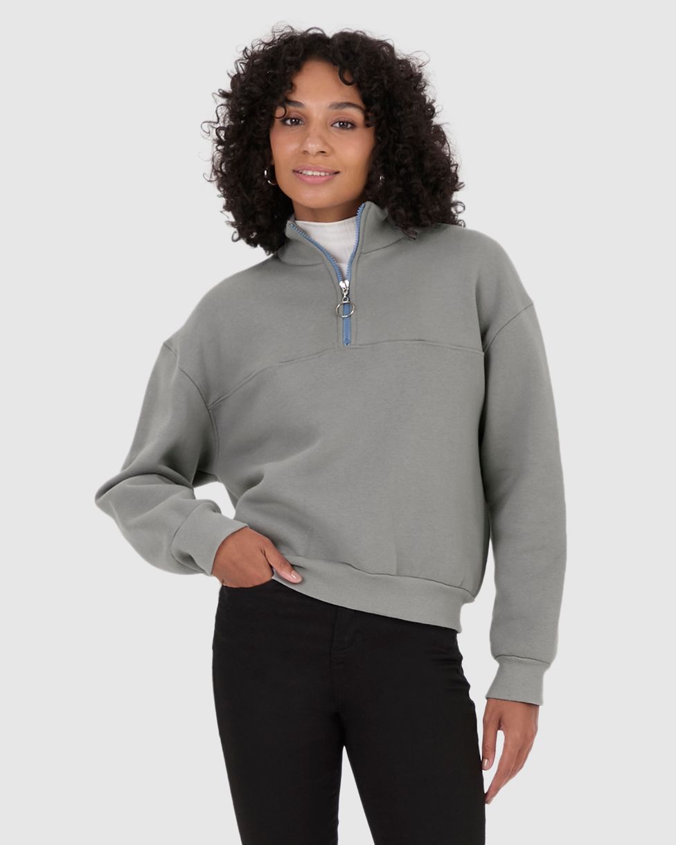 Blusão Feminino Abertura Decote Com Zíper Em Moletom Premium
