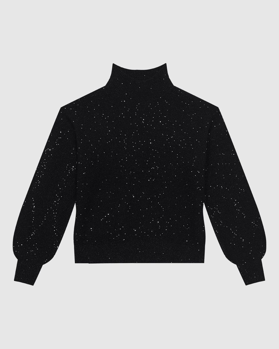 Blusão Feminino Gola Alta Com Brilho Em Tricô - ENFIM