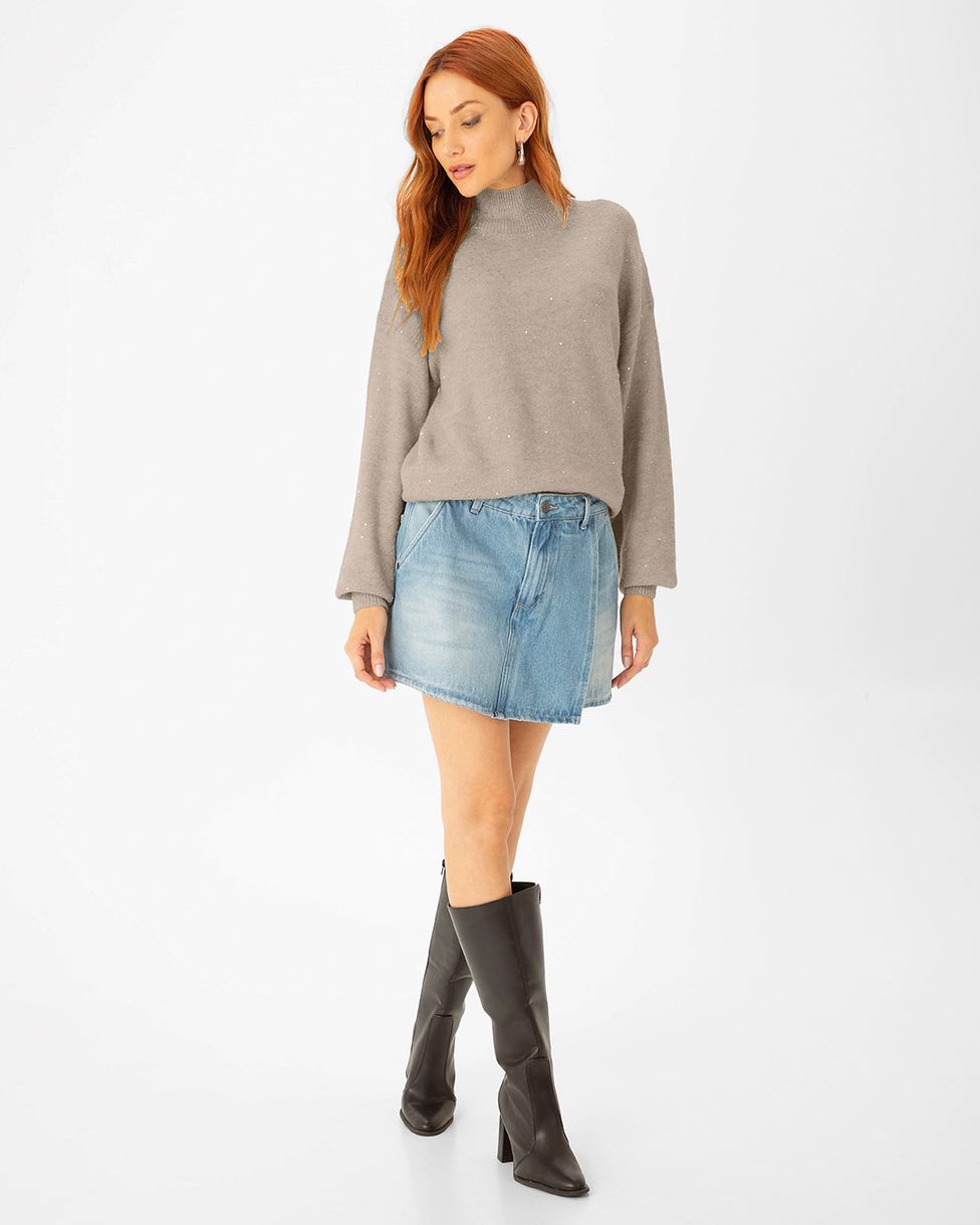 Blusão Feminino Gola Alta Com Brilho Em Tricô - ENFIM