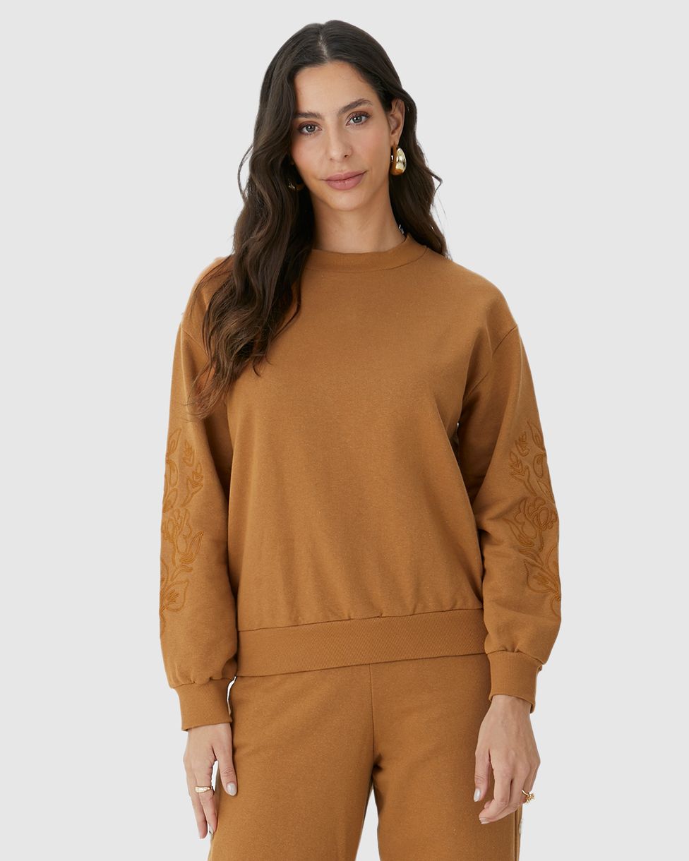 Blusão Feminino Manga Longa Com Bordado Em Moletom Eco