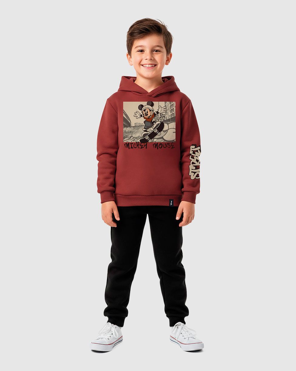 O Blusão Infantil Menino Mickey Mouse traz o estilo das ruas para o guarda-roupa dos garotod. Feito em moletom flanelado, ele possui capuz e estampas radicais do Mickey, incluindo detalhes em puff e artes nas mangas. É a peça perfeita para um inverno cheio de atitude e muito conforto.