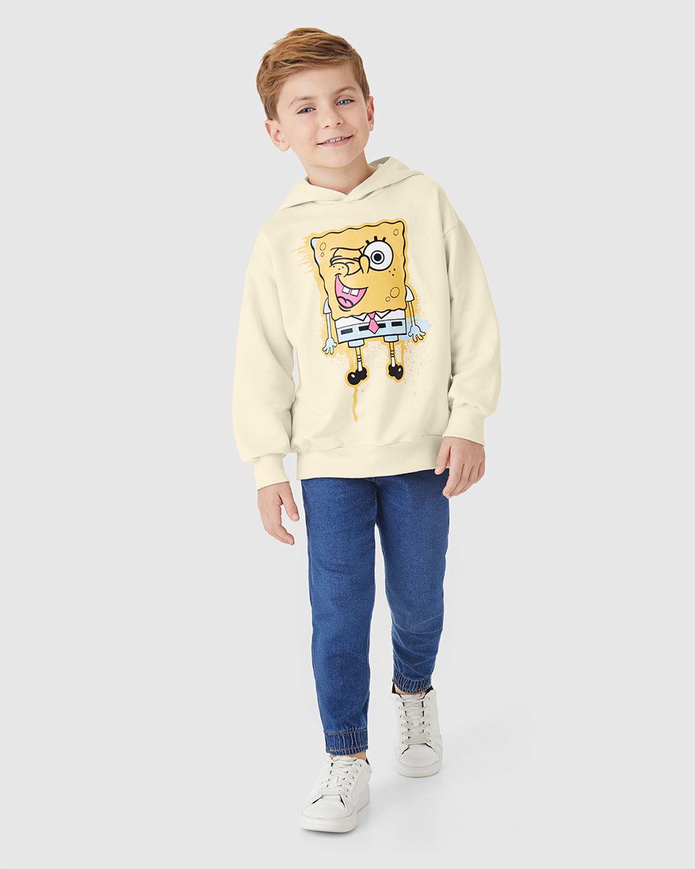 Blusão Infantil Unissex Estampa Bob Esponja Em Moletom Malwee Kids