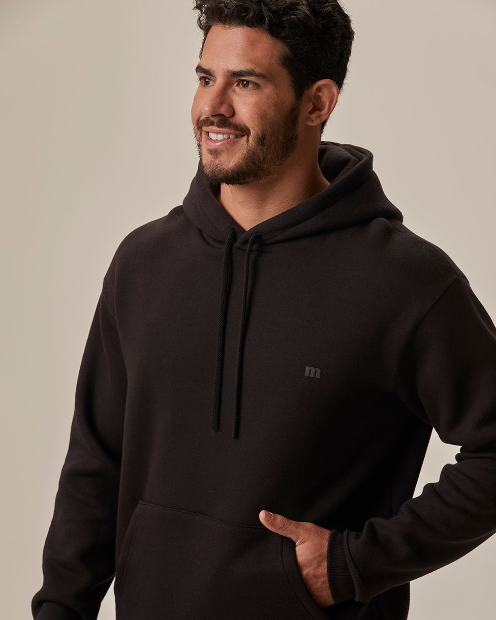 Blusão Masculino Abraço Com Capuz Em Moletom Comfy Touch Flanelado Preto - XGG