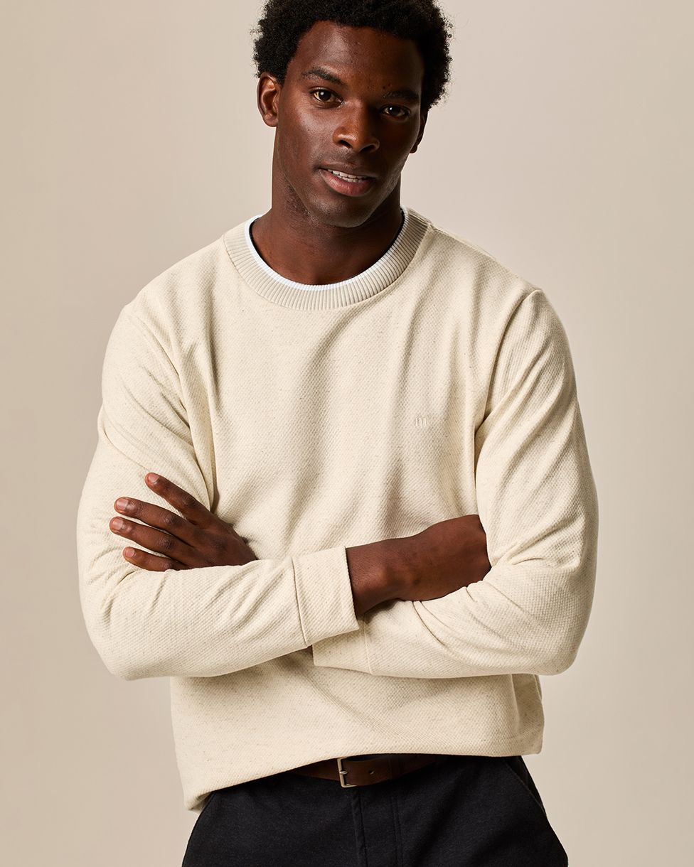 Blusão Masculino Gola Dupla Contraste Bordado Frontal Em Moletinho Texturizado Off White - P