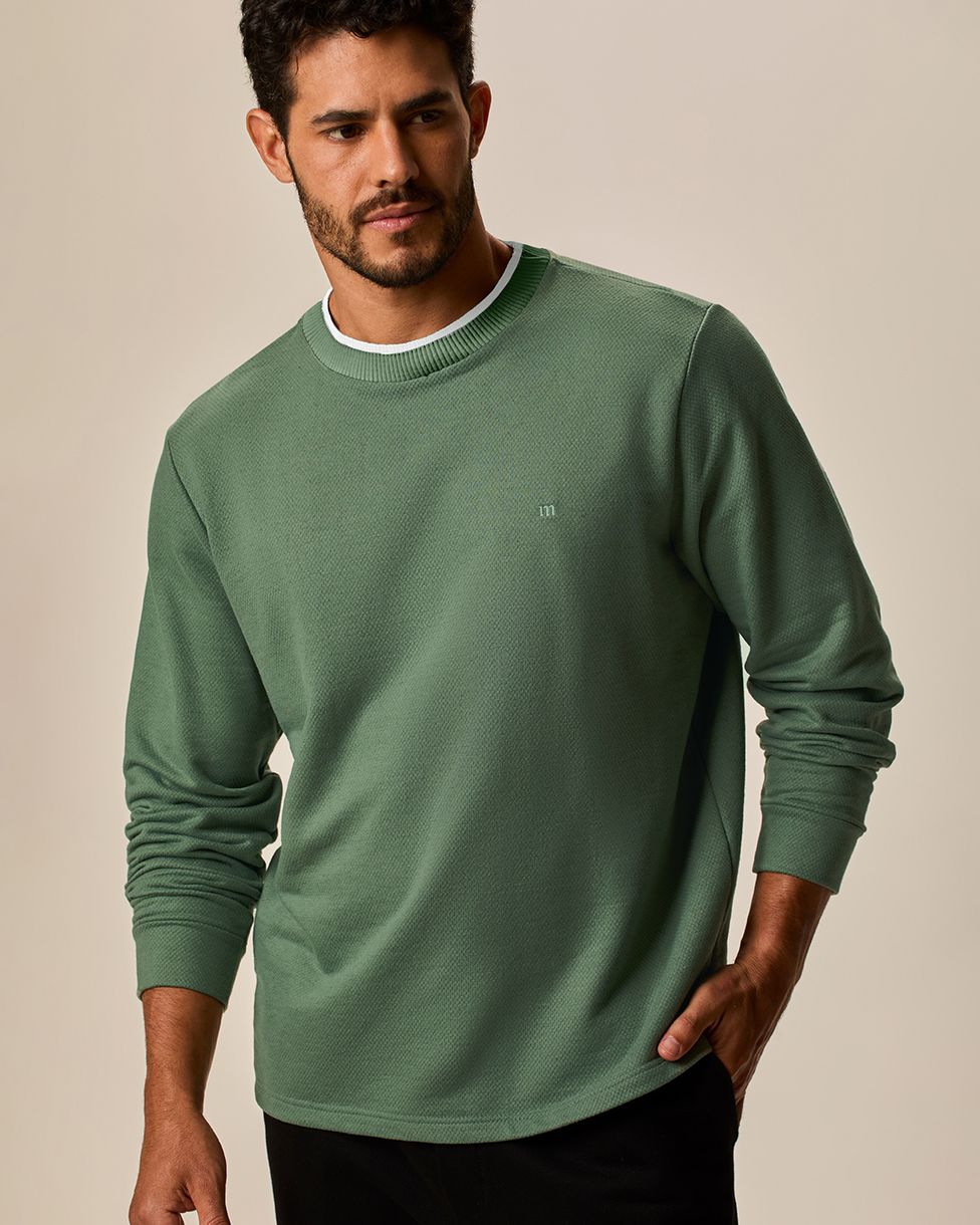 Blusão Masculino Gola Dupla Contraste Bordado Frontal Em Moletinho Texturizado Verde - P