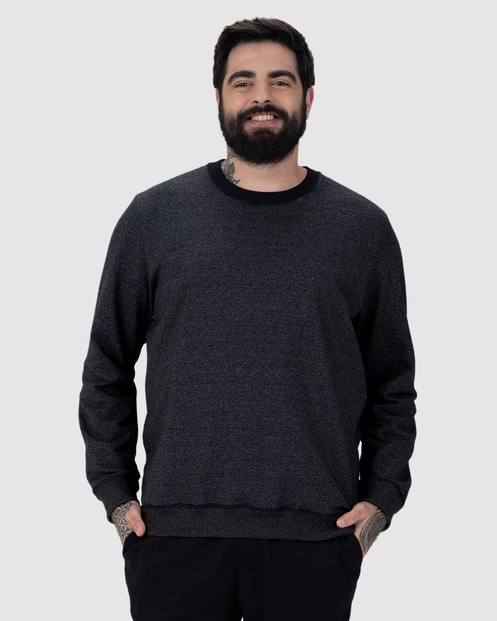 Blusão Masculino Plus Size Gola Redonda Em Moletom Rajado Flanelado