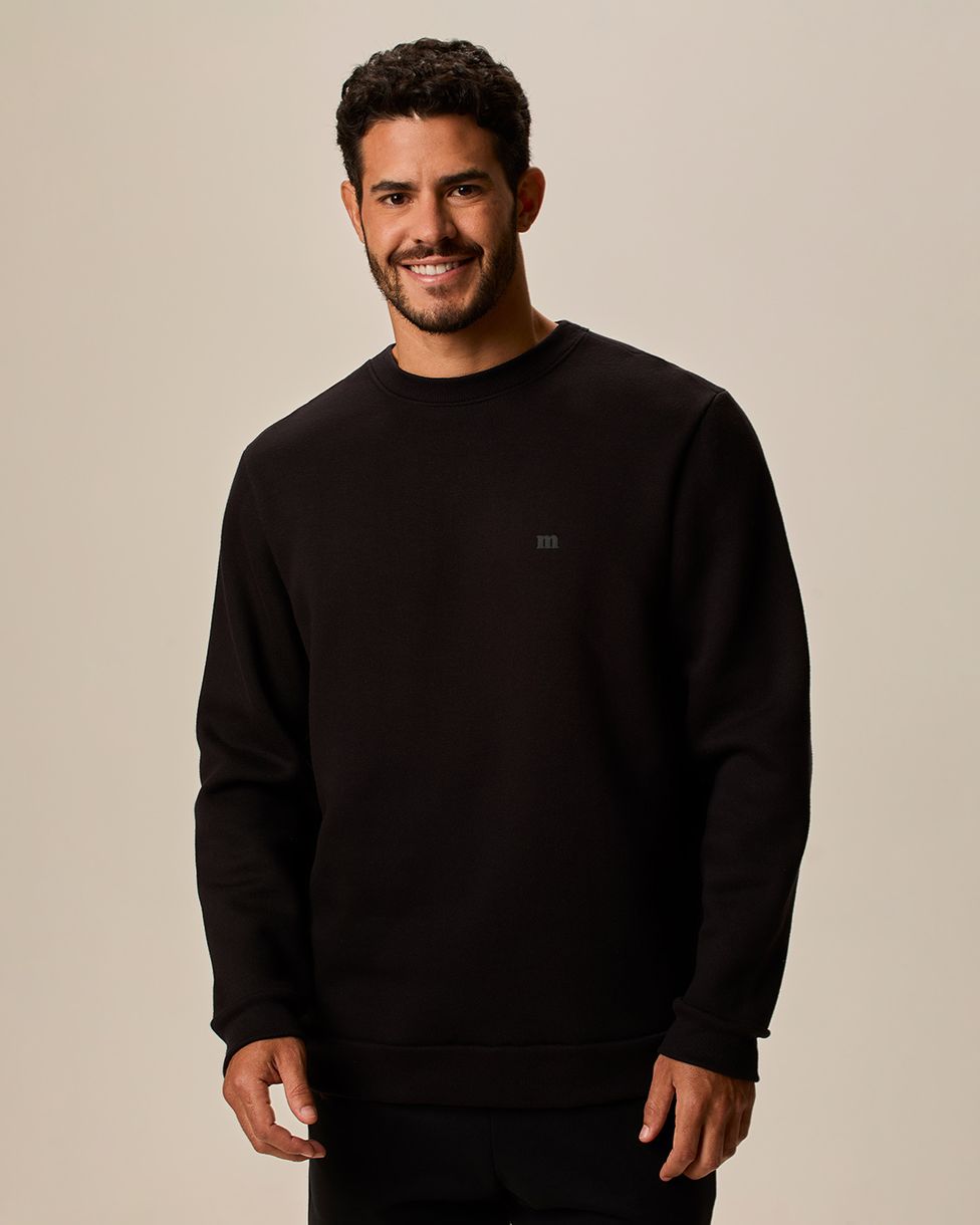 Blusão Masculino Regular Abraço Em Moletom Comfy Touch Flanelado Preto - P