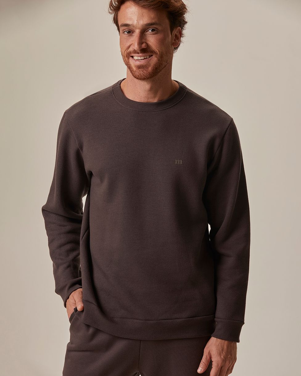 Blusão Masculino Regular Abraço Em Moletom Comfy Touch Flanelado Marrom - P