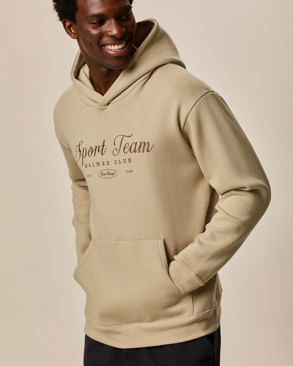 Blusão Masculino Regular Com Capuz Estampa E Bordado Moletom Do Abraço Marrom - P