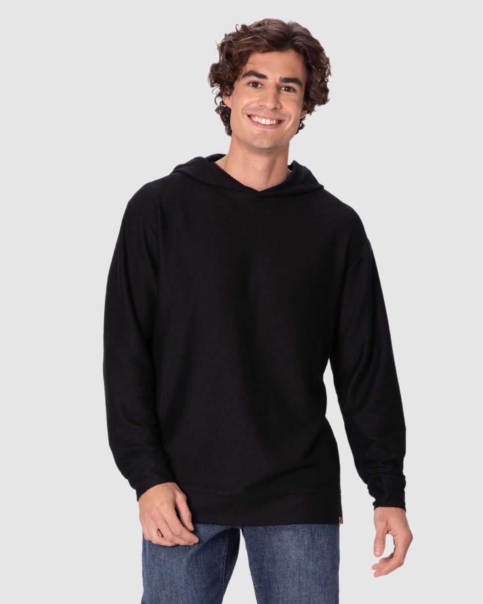 Blusão Masculino Regular Com Capuz Etiqueta Decorativa Em Malha Texturizada Preto - P