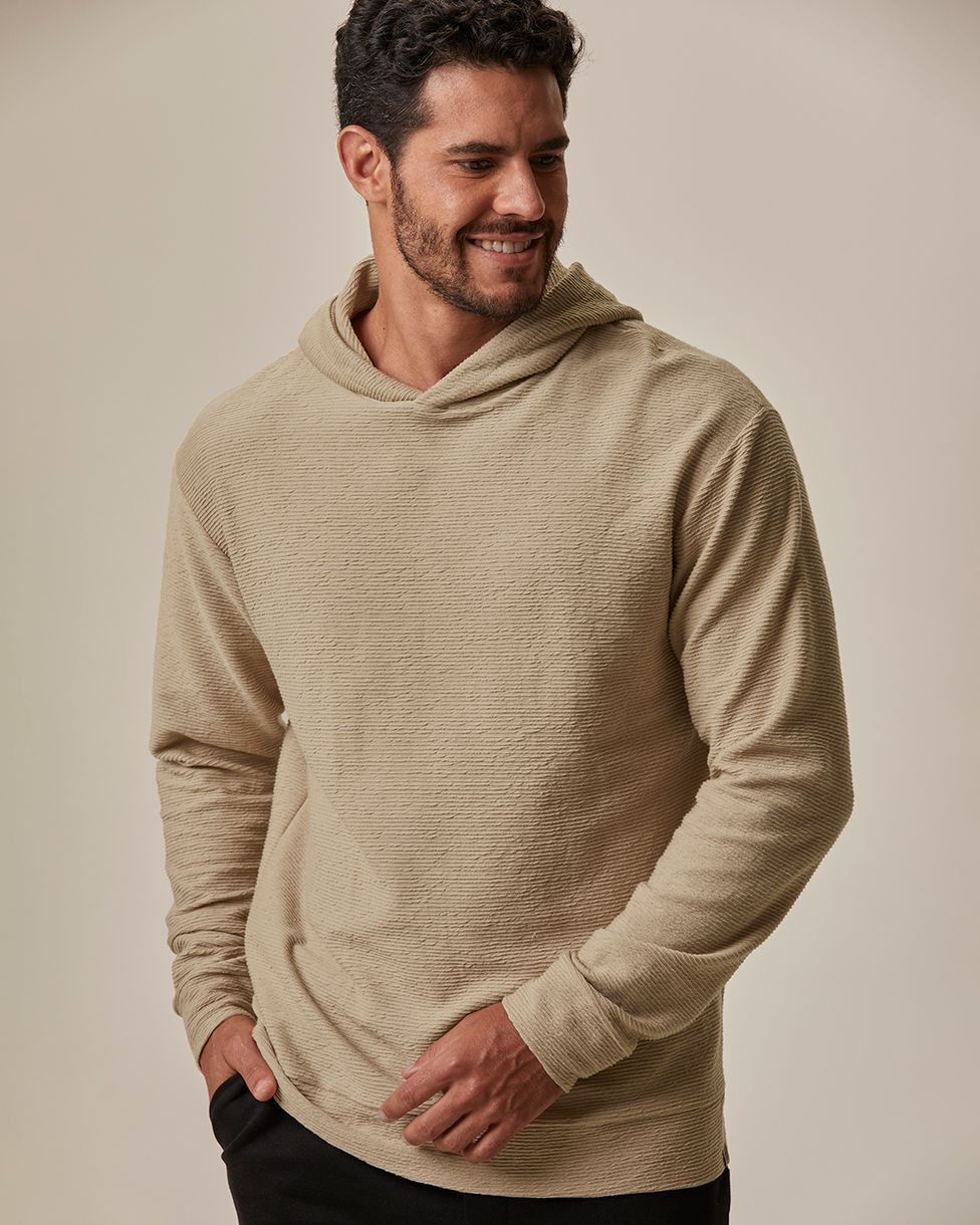 O Blusão Masculino Regular com Capuz em malha texturizada é perfeito para quem busca estilo e conforto. Com modelagem regular e capuz ajustável, oferece proteção extra e um toque moderno ao visual. A etiqueta decorativa acrescenta um detalhe exclusivo, valorizando a peça em qualquer ocasião.
