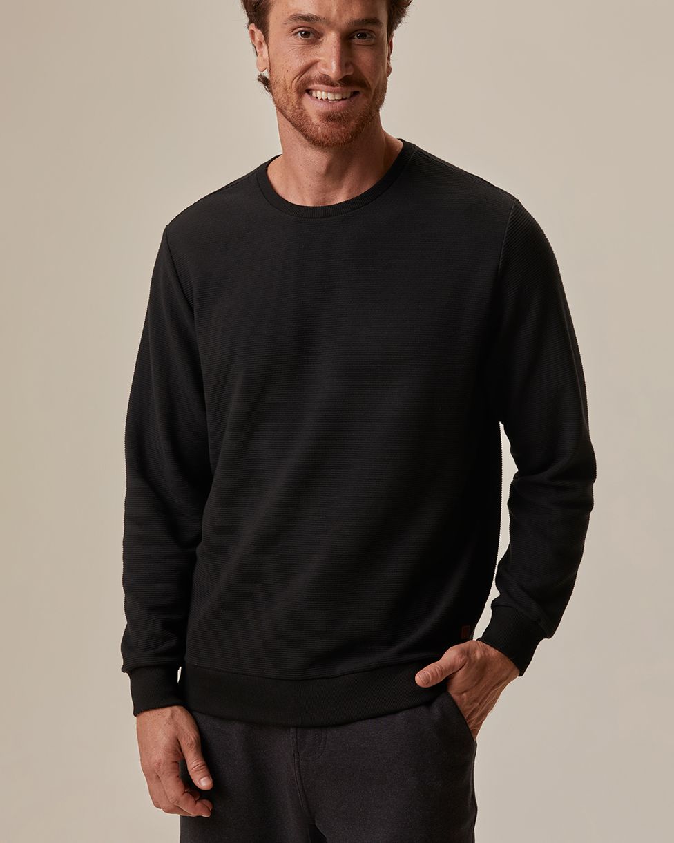 Blusão Masculino Regular Gola Redonda Em Malha Texturizada Preto - XGG