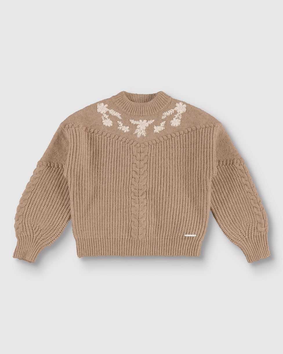 Blusão Menina Estampa Bordada Frontal Em Tricô - Carinhoso