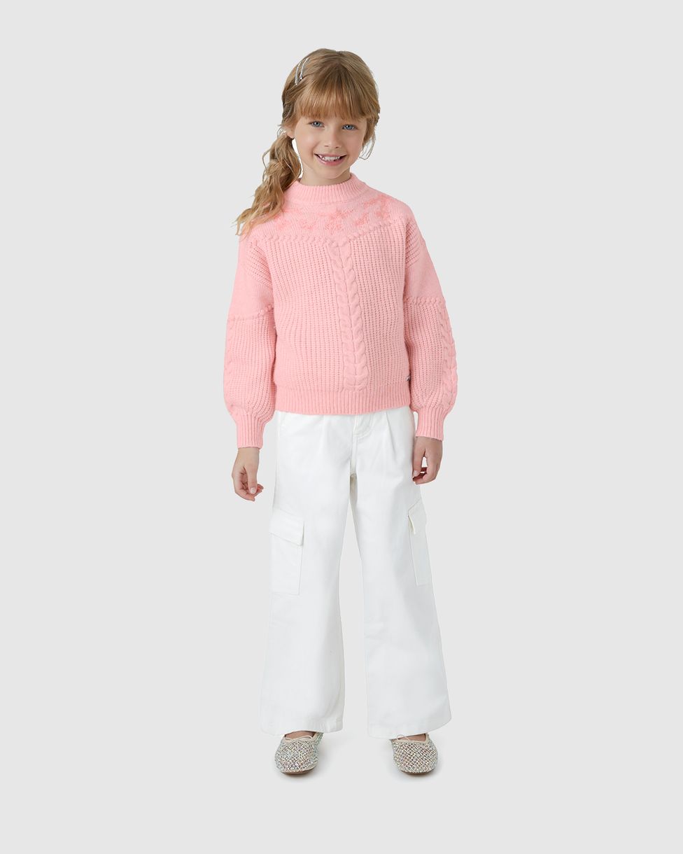 Blusão Menina Estampa Bordada Frontal Em Tricô - Carinhoso