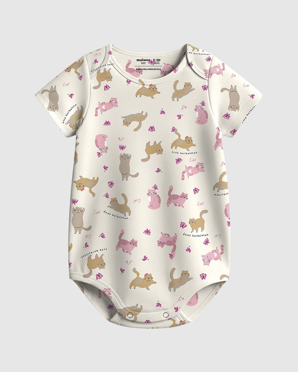 Body Bebê Menina Estampa Gatinhos Em Algodão Malwee Kids