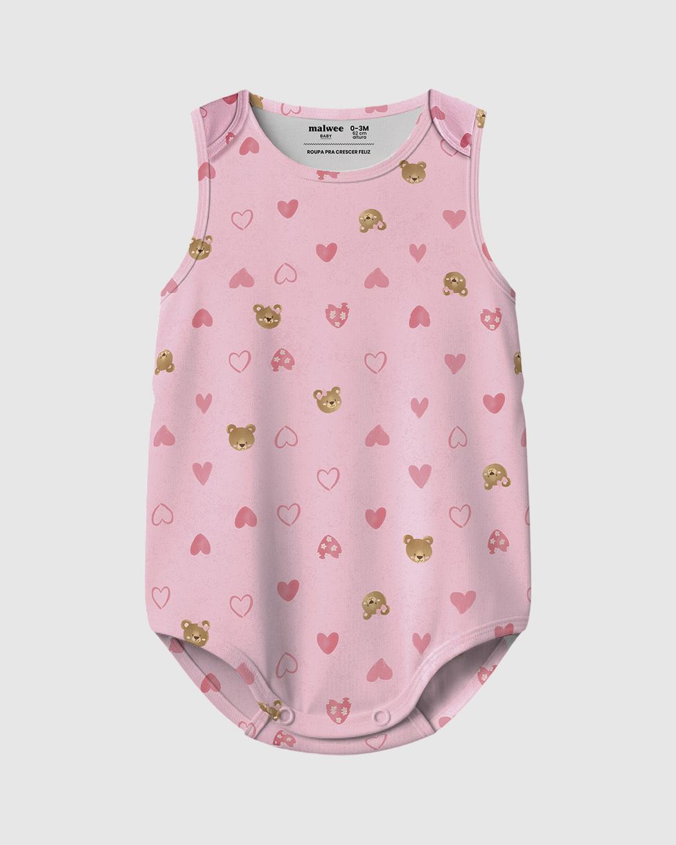 Conforto e fofura em um só! O Body Bebê Menina Regata Malwee Kids, em algodão macio, é perfeito para o verão. A estampa de ursinhos adiciona charme e alegria, garantindo leveza e liberdade. Um essencial prático e adorável para sua bebê.