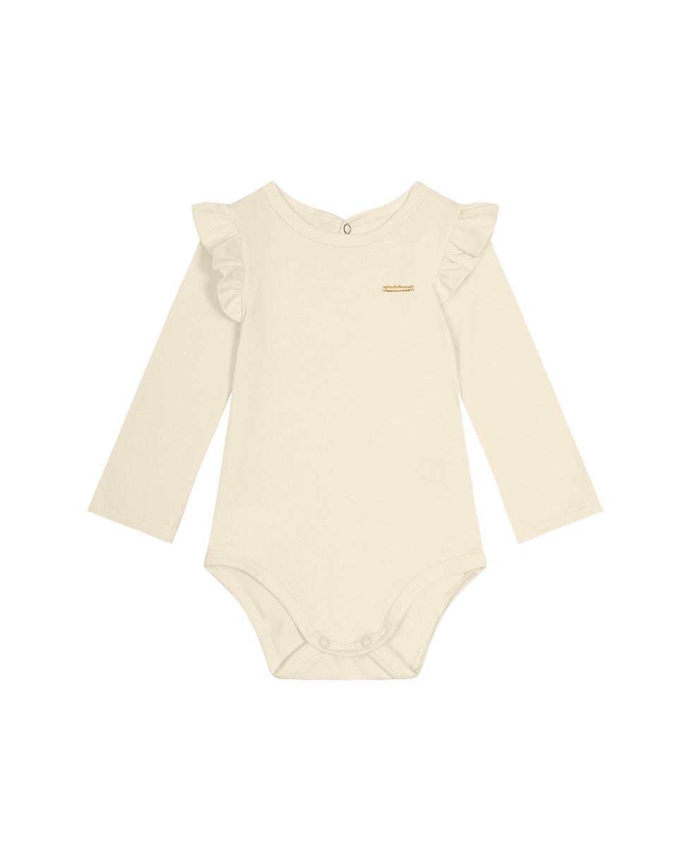 Body Menina Manga Longa Com Babado Em Algodão - Carinhoso