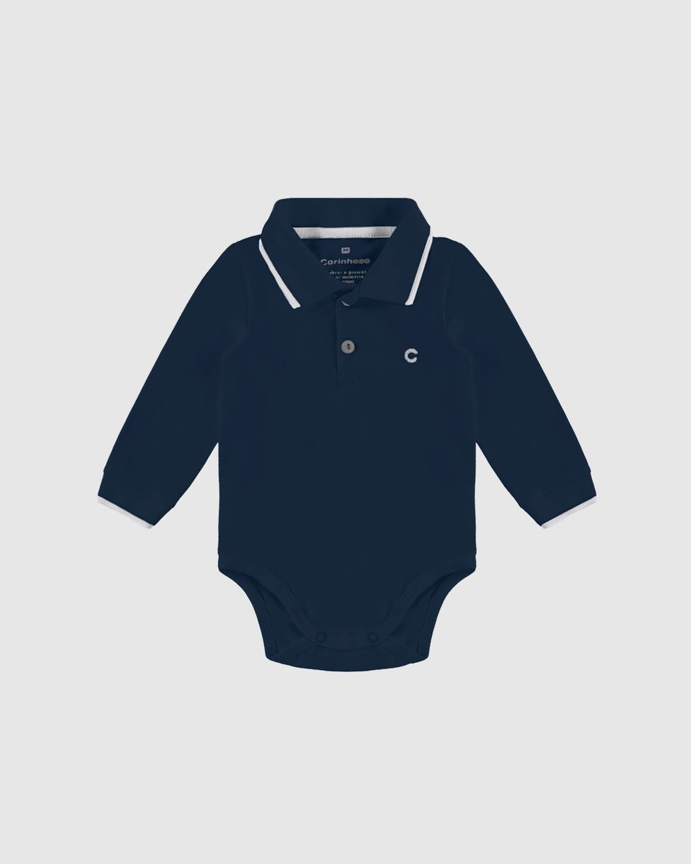 InfantilBody e MacacõesBody BásicosBody Polo Menino Manga Longa Em Algodão - Carinhoso
