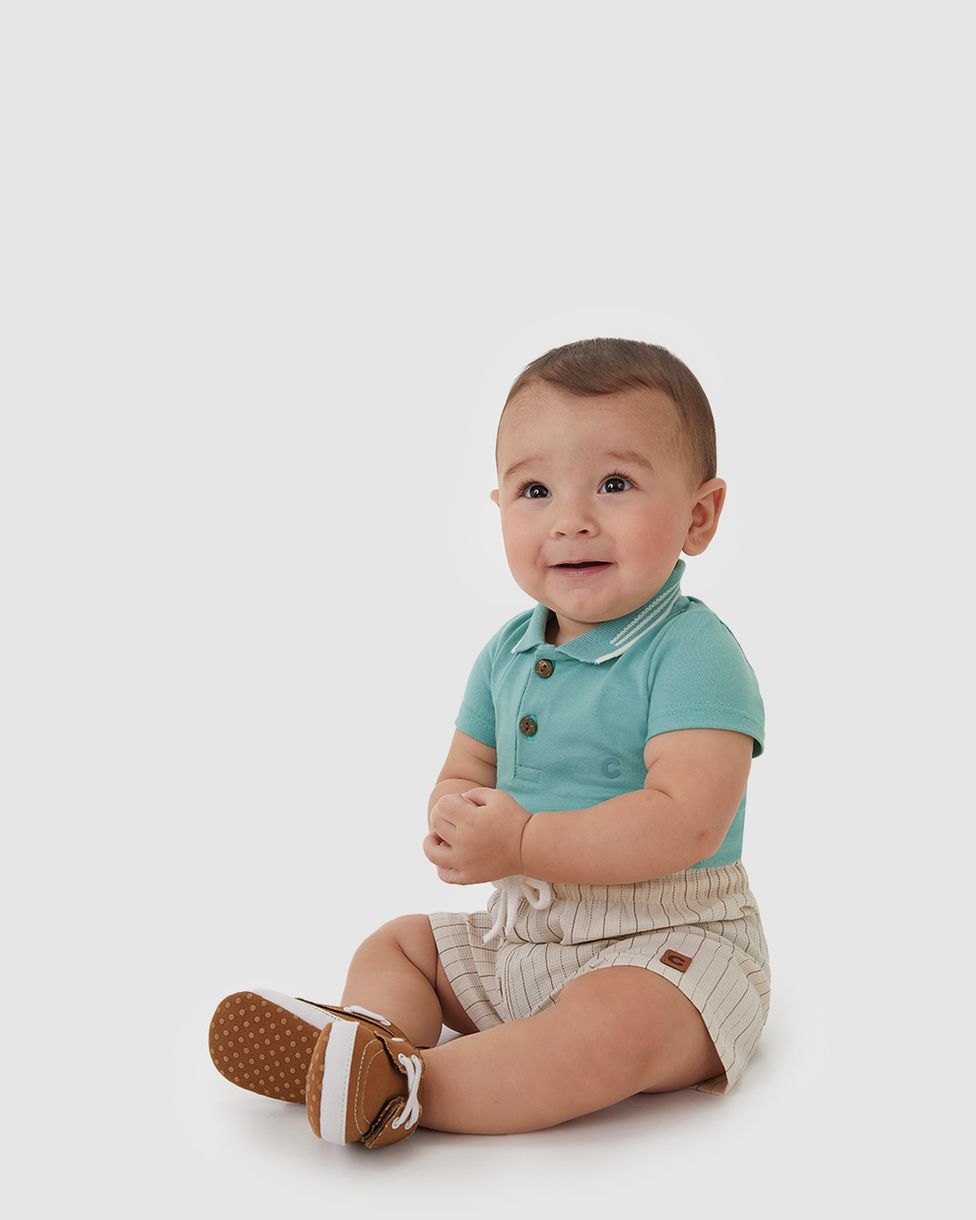 Body Polo Menino Peitilho Frontal Manga Curta Em Algodão - Carinhoso