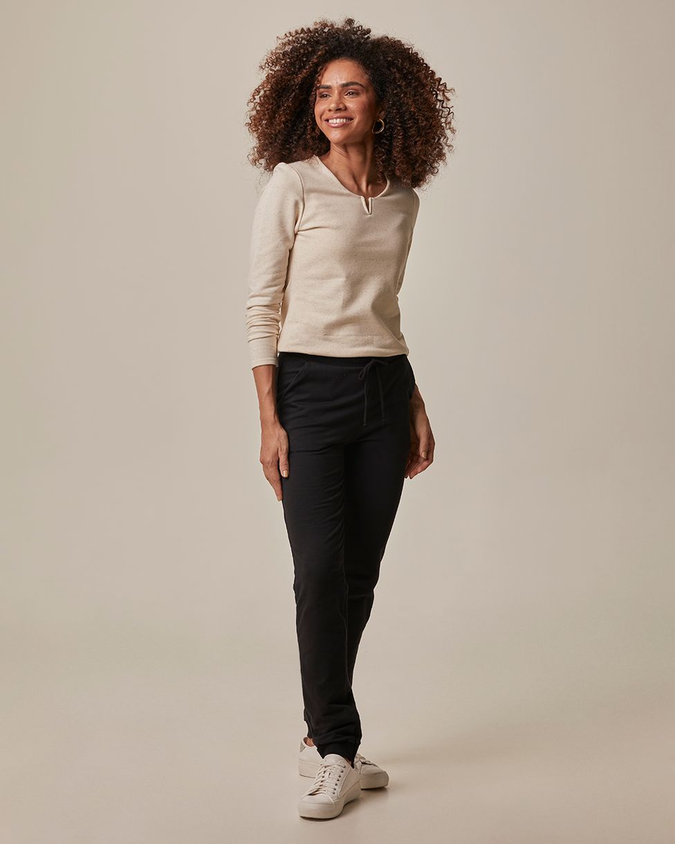 • Modelagem jogger: Design casual com punhos ajustados para um toque moderno