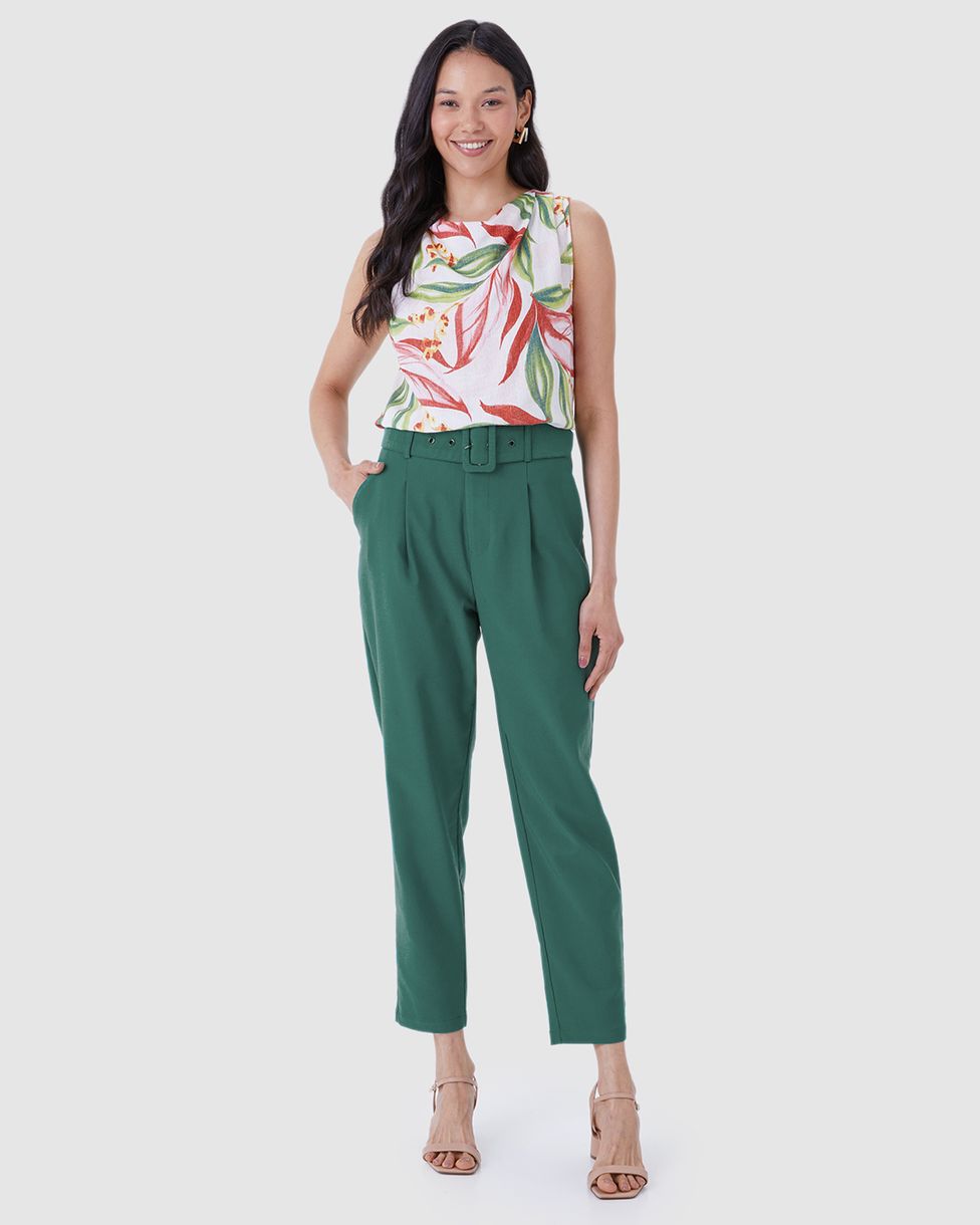 Calça Alfaiataria Feminina Com Cinto E Bolso Lateral Verde - G