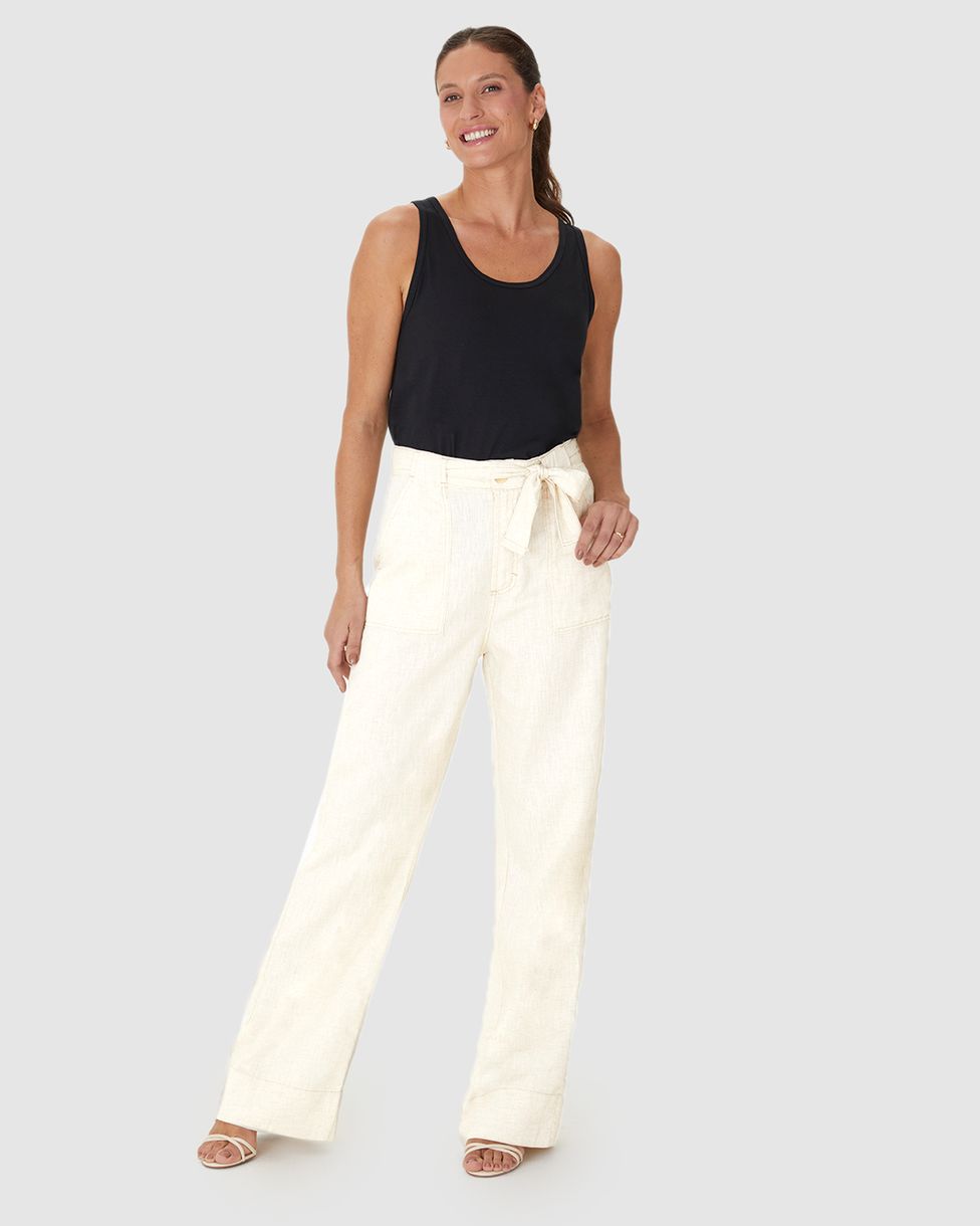 Calça Alfaiataria Feminina Com Cinto Em Sarja Linho Off White - 36