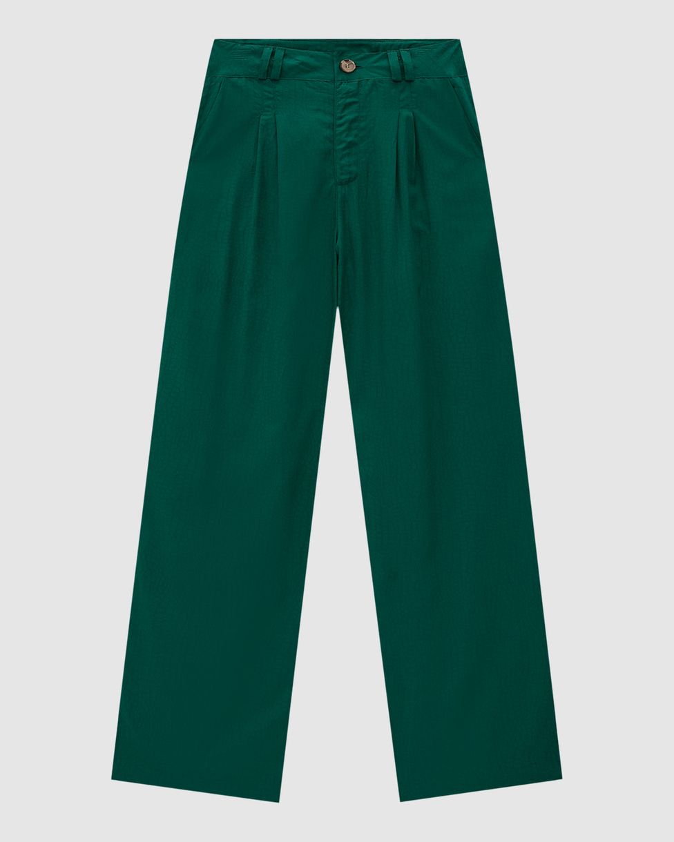 Calça Alfaiataria Feminina Pregas Frontais Em Tecido Jacquard - ENFIM