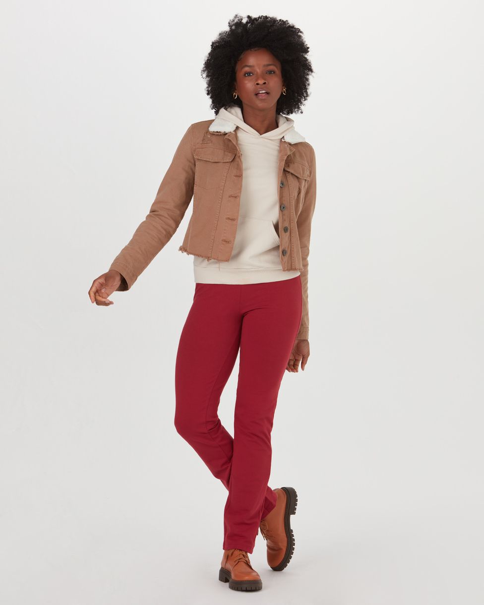 • Calça Básica Feminina Em Moletom Stretch Flanelado