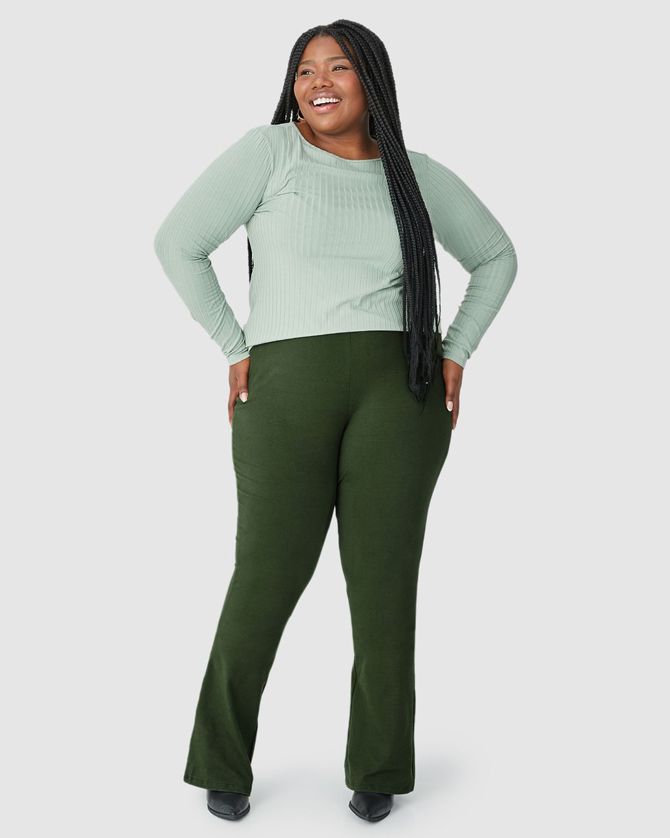 Calça Básica Feminina Plus Size Flare Em Algodão