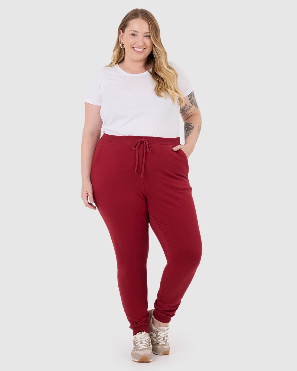 Calça Básica Feminina Plus Size Jogger Em Moletom Stretch Flanelado