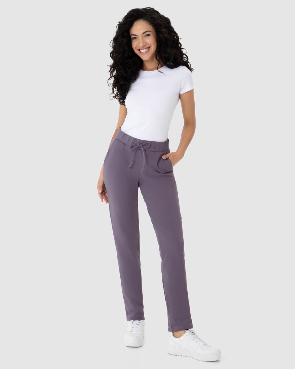 FemininoCalçasCalças BásicasCalça Básica Feminina Reta Em Moletom Stretch Flanelado