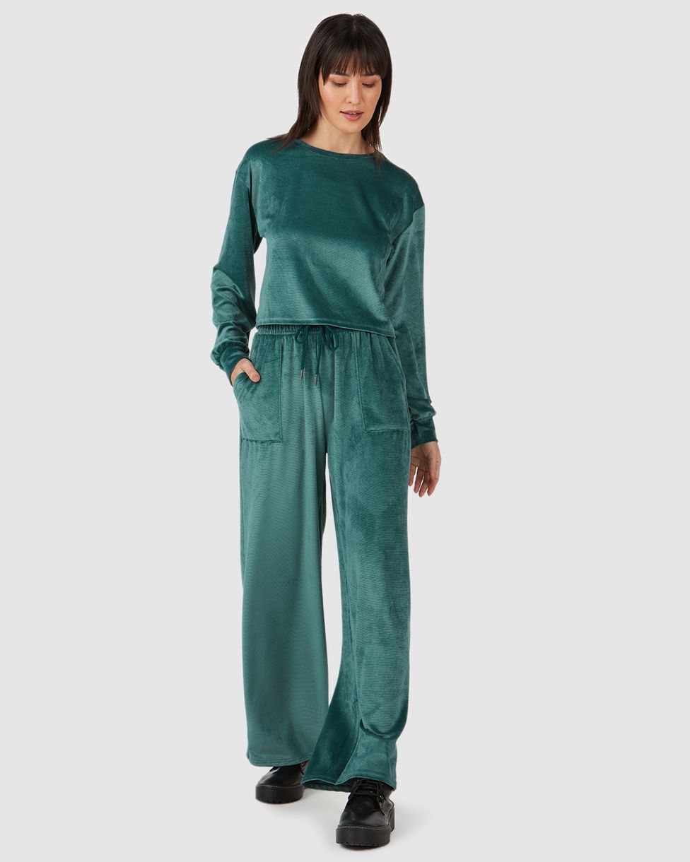 Calça feminina confeccionada em malha de veludo canelado. A calça Wide Leg, com pernas mais amplas que descem aumentando levemente até a barra, é uma peça super em alta e moderna para compor os looks da estação, ela conta com cintura alta, apresentando seu cós com elástico com cadarço frontal e bolsos frontais com pesponto aparente. Um peça curinga e estilosa, permitindo diversas combinações. Aposte com blusa ajustada de gola alta Malwee e tênis!