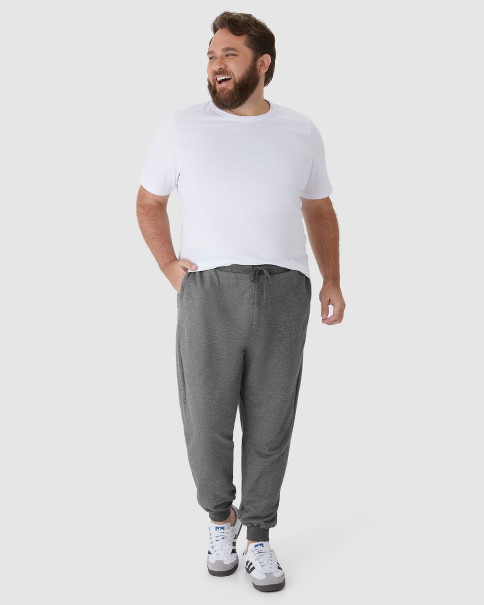 Calça Básica Masculina Plus Size Jogger Em Moletom