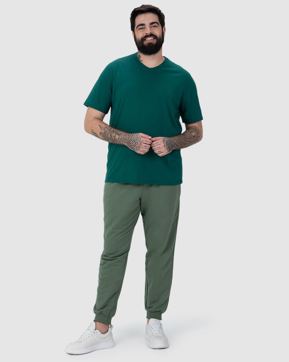 Calça Básica Masculina Plus Size Jogger Em Moletom
