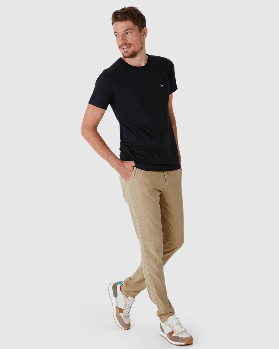 Calça Chino Masculina Cintura Média Com Cadarço Em Sarja Linho