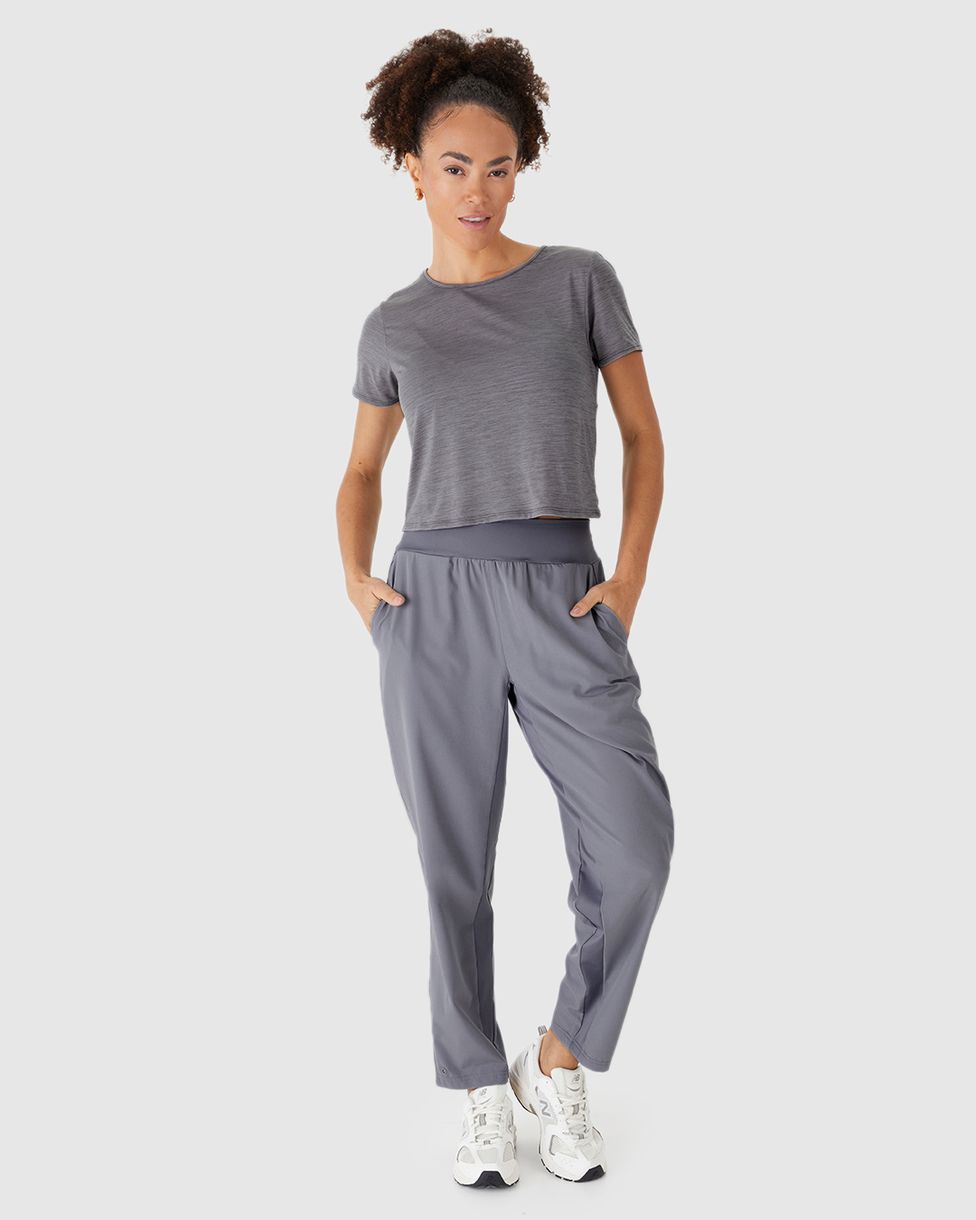 Calça Esportiva Feminina Runner Botão Ajuste Na Barra Em Tafetá Com Elastano Malwee Active Cinza - M