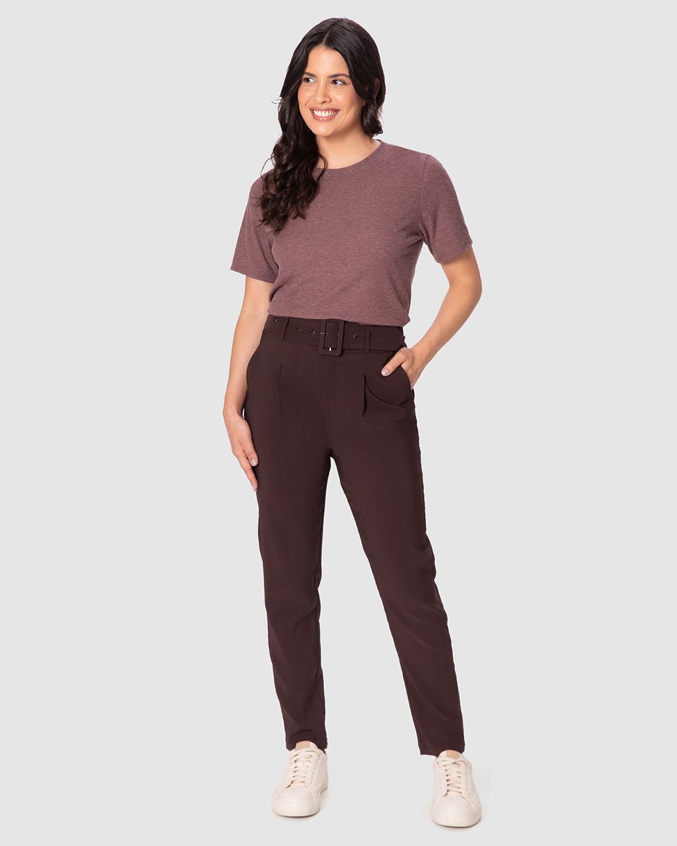 Calça Feminina Carrot Bolso Funcional E Cinto Alfaiataria Com Elastano