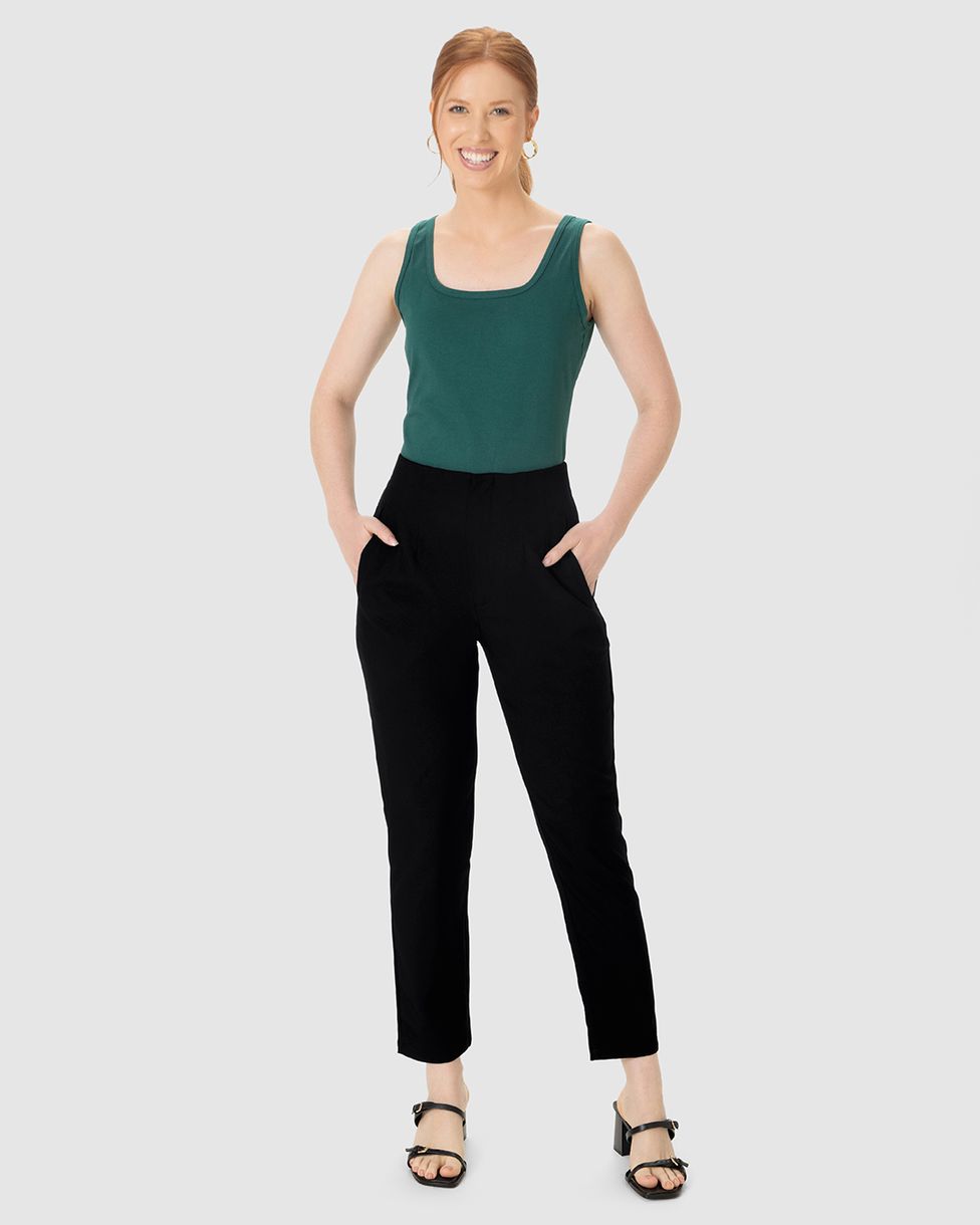 Calça Feminina Carrot Cintura Alta Bolso Funcional Em Poliéster