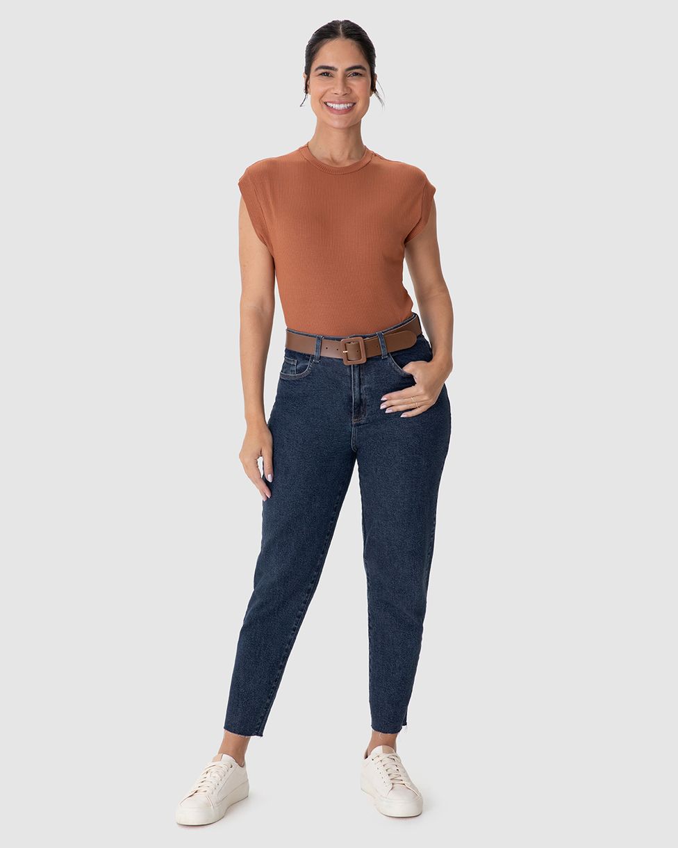 • Calça feminina mom em jeans com elastano