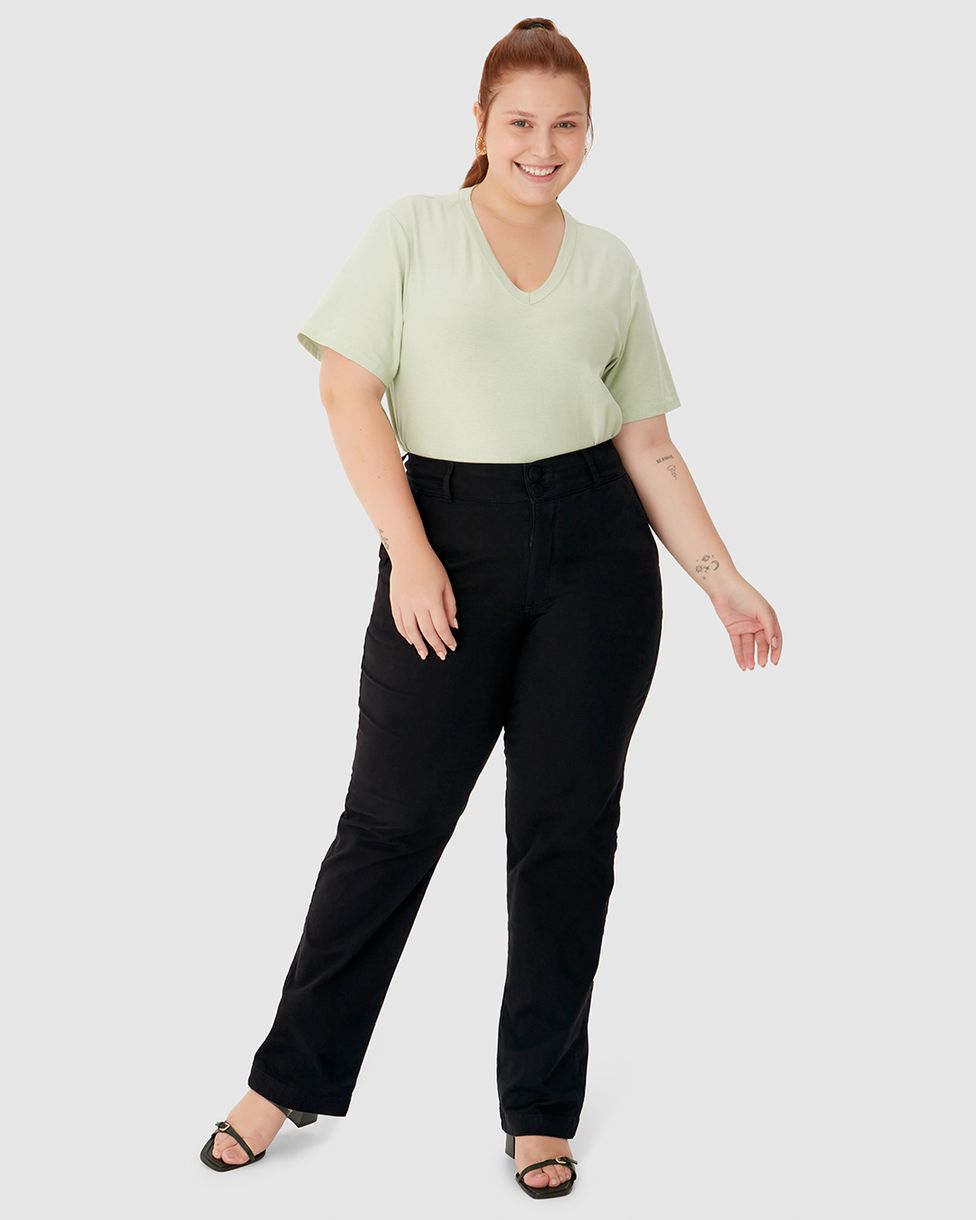 Calça Feminina Plus Size Alfaiataria Cintura Média Em Sarja Com Elastano