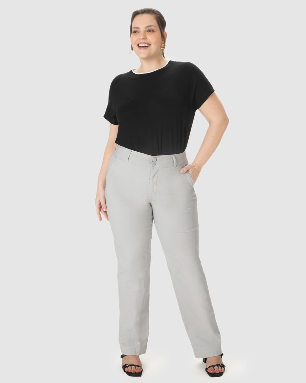 Calça Feminina Plus Size Alfaiataria Cintura Média Em Sarja Com Elastano