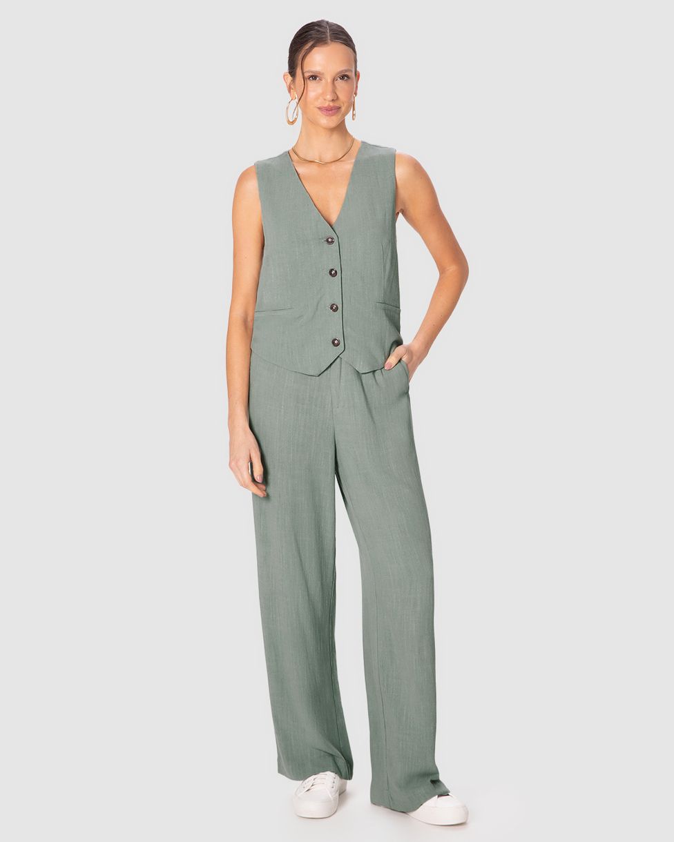 Calça Feminina Reta Bolso Funcional Em Viscolinho Verde - P