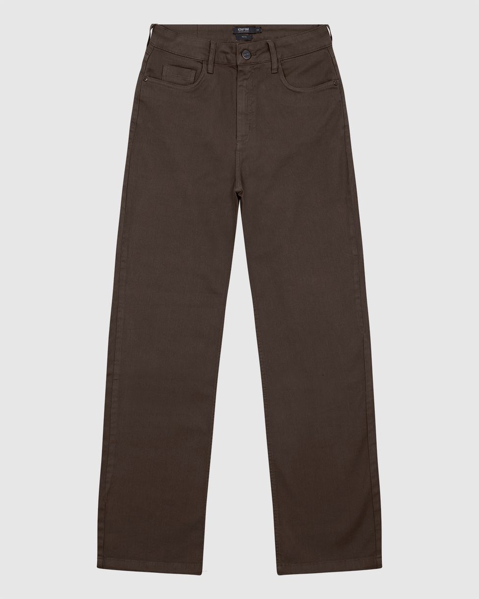 Calça Feminina Reta Cintura Alta Bolso Funcional Em Sarja Stretch - ENFIM