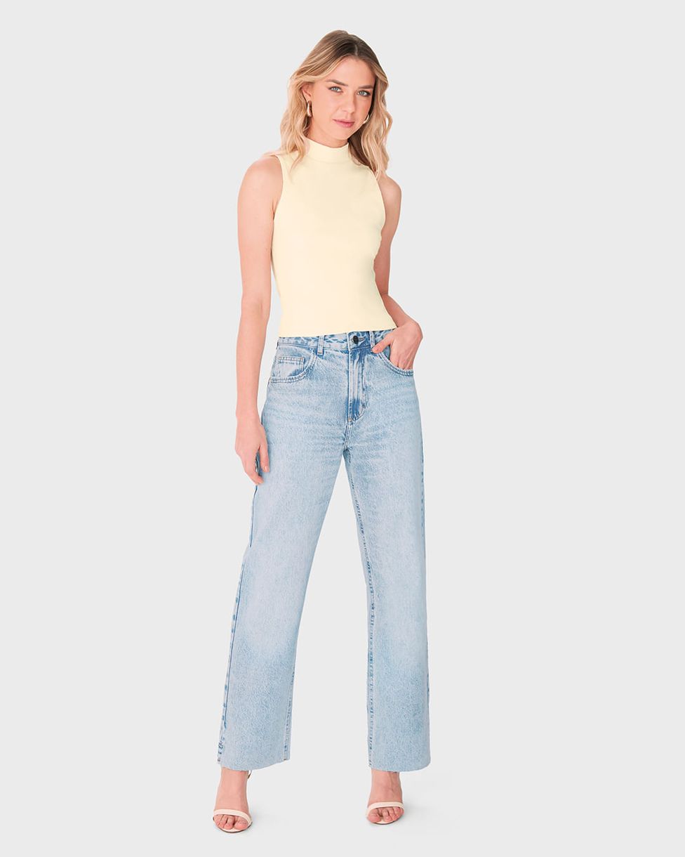 Calça Feminina Reta Fenda E Barra Desfiada Em Jeans 100% Algodão - ENFIM
