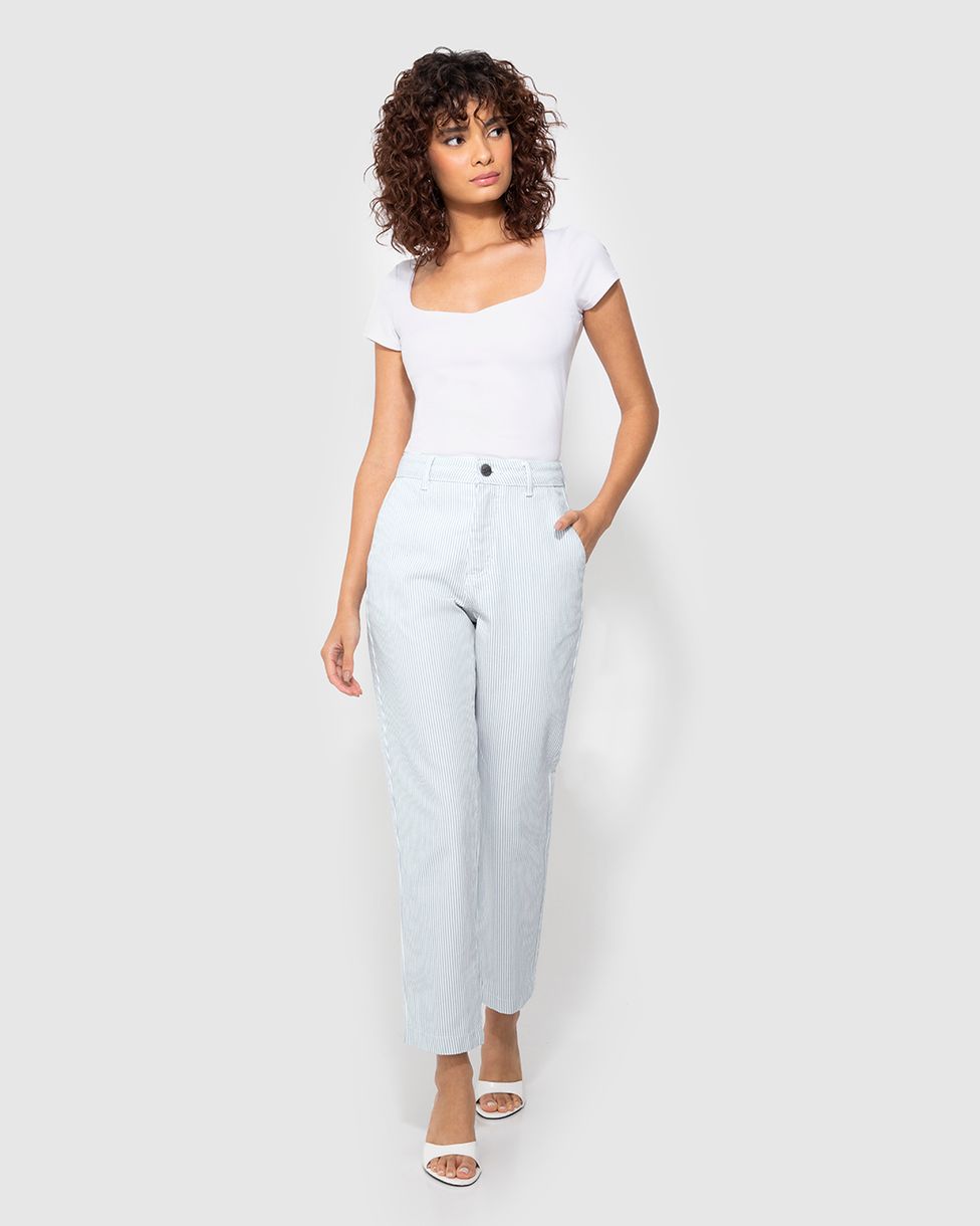 Calça Feminina Reta Listrada Em Sarja 100% Algodão - ENFIM